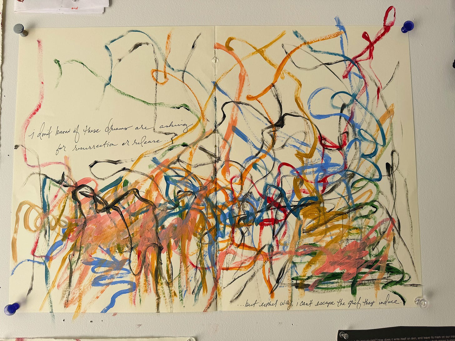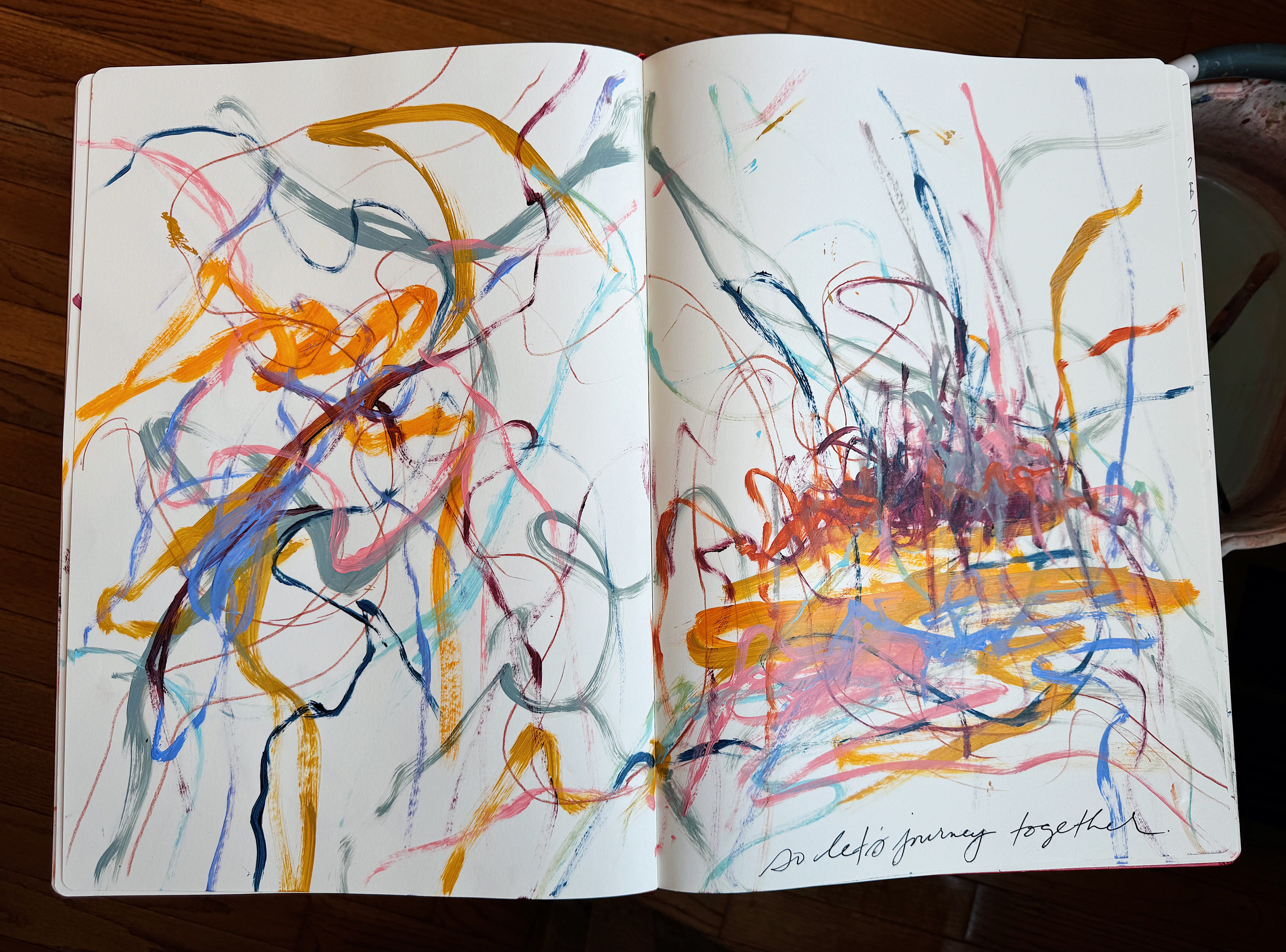some pages from my big red sketchbook about journeying through, dreams, and staying on the battlefield...together